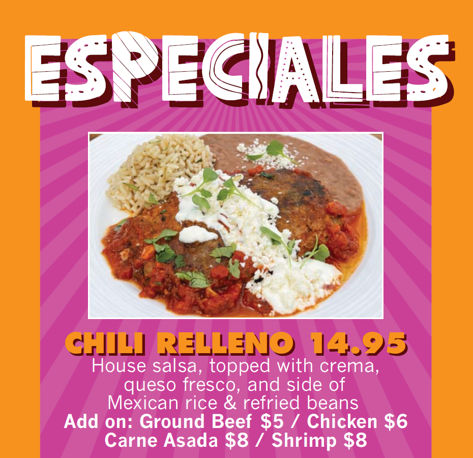 Mexican spice-marinated grilled flank steak, green chile sauce, pico de gallo
