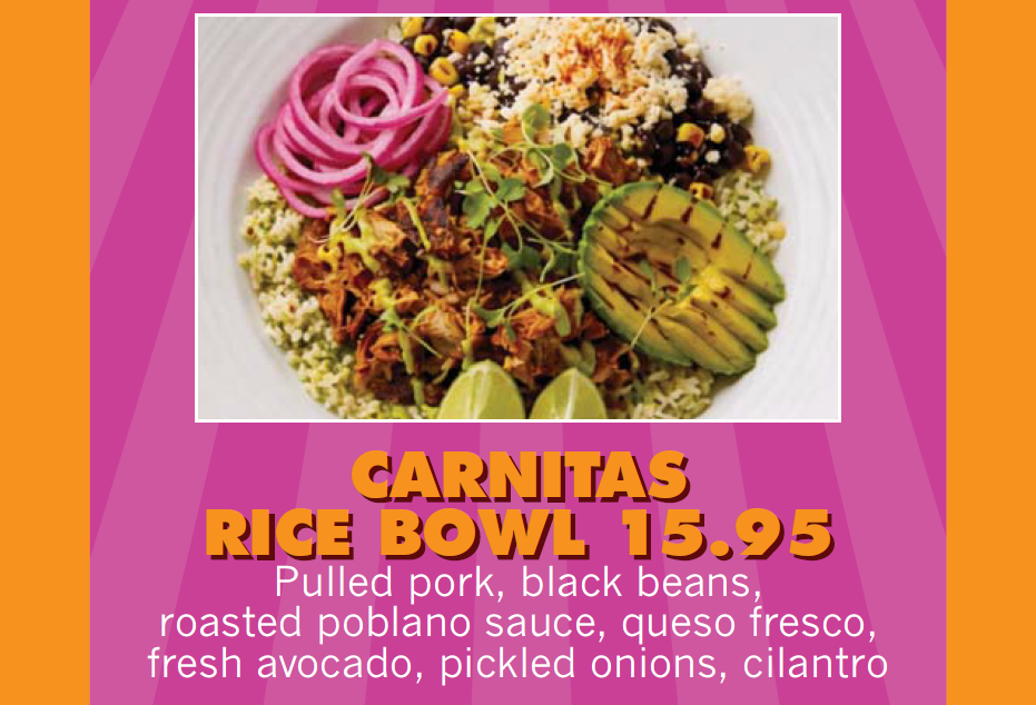 GROUND BEEF 5 | CHICKEN 6 | CARNE ASADA 8 | GRILLED SHRIMP 8 | SEARED TUNA* 10