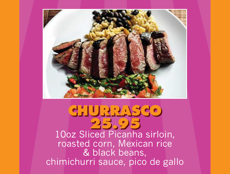 Sizzling with bell peppers & onions. Served with mexican rice, black beans & flour tortillas.-