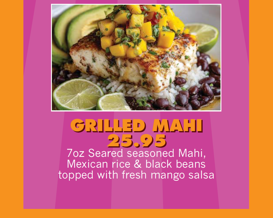 Mahi mahi, pico de gallo, shredded lettuce, citrus aioli