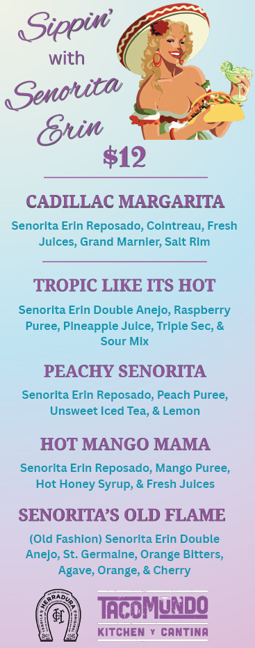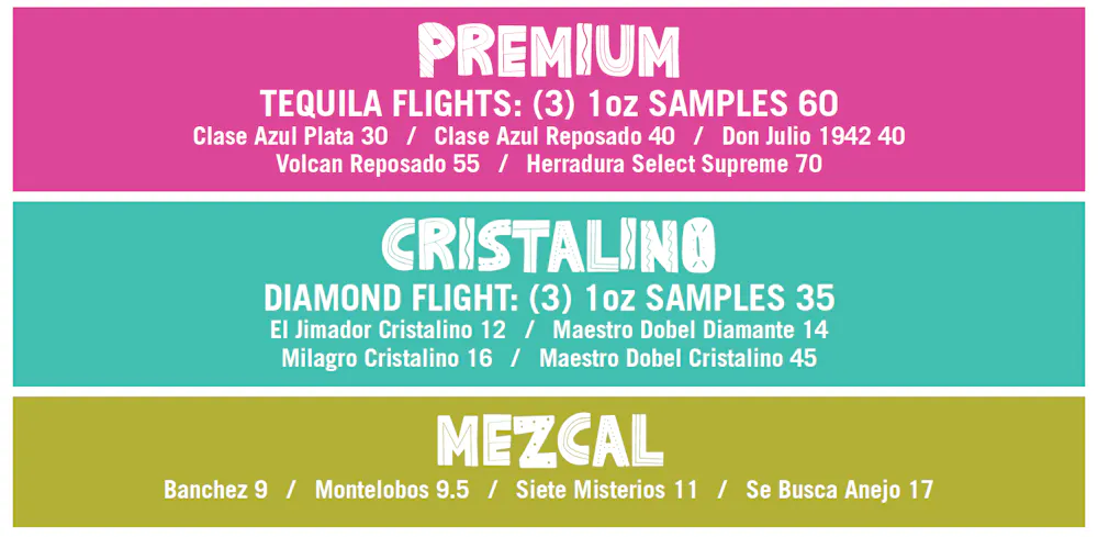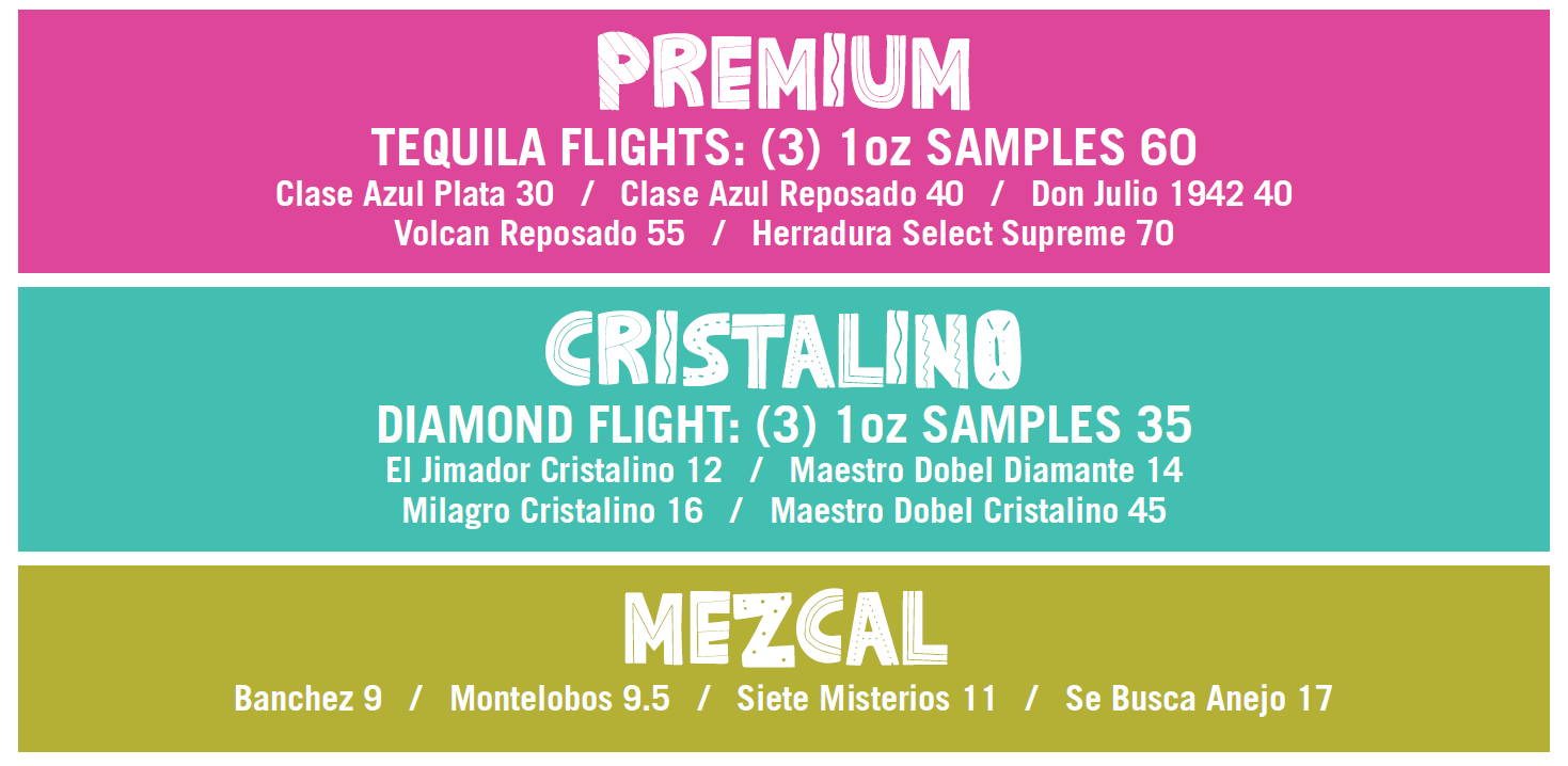 SERVED WITH BLACK BEANS AND MEXICAN RICE CHOICE OF TWO TACOS $14.95 • CHOICE OF THREE TACOS $18.95
