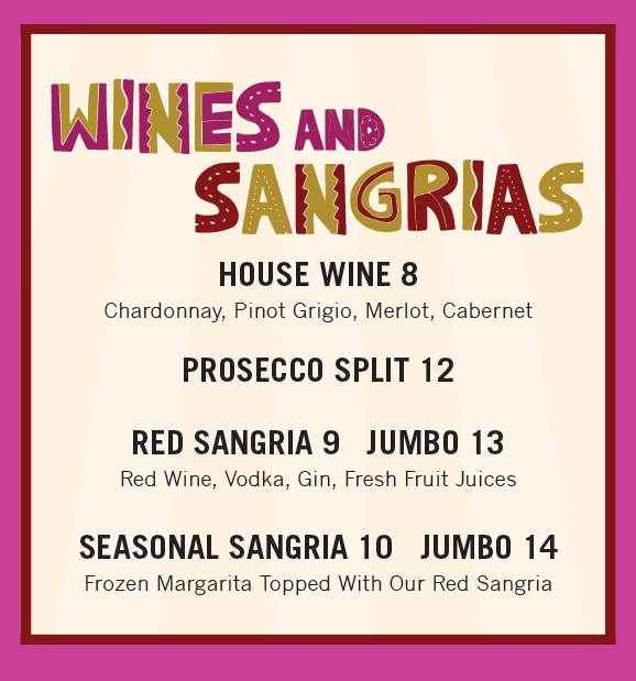 Please notify your server should you need assistance or transportation home; we will be glad to make the appropriate arrangements. Alcohol consumption is a personal choice, and it is your responsibility